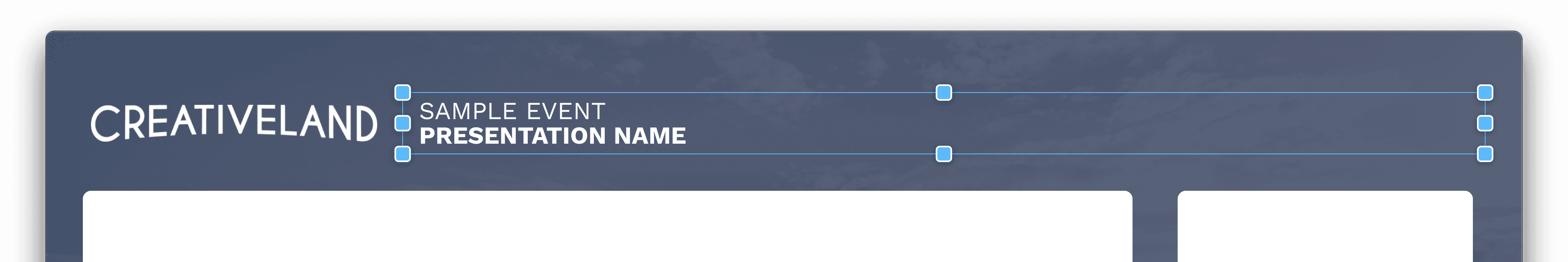The event name and session name are in the same text box, to simplify the layout and ensure alignment. The box spans the rest of the canvas, to account for long session names.